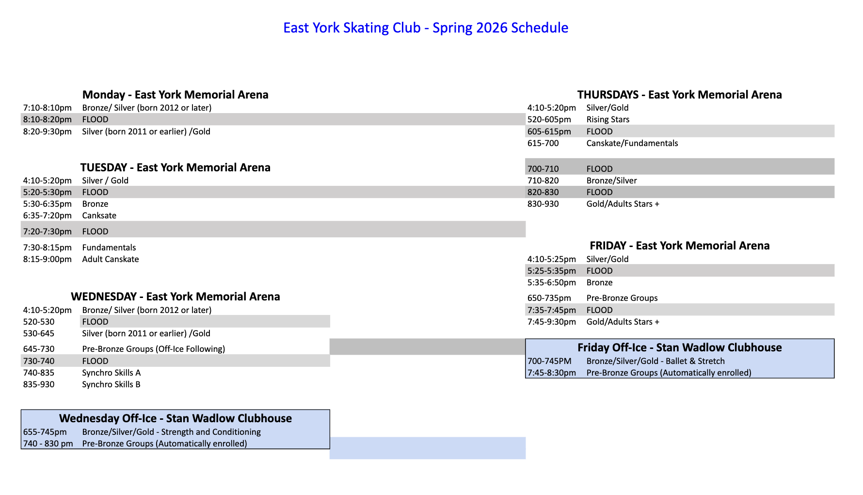 Off Ice Requirements